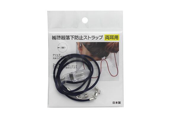 補聴器落下防止ストラップ 名古屋眼鏡 両耳用 ネイビー 日本製 耳かけ式・耳あな式対応 クリップ付き 9210-01