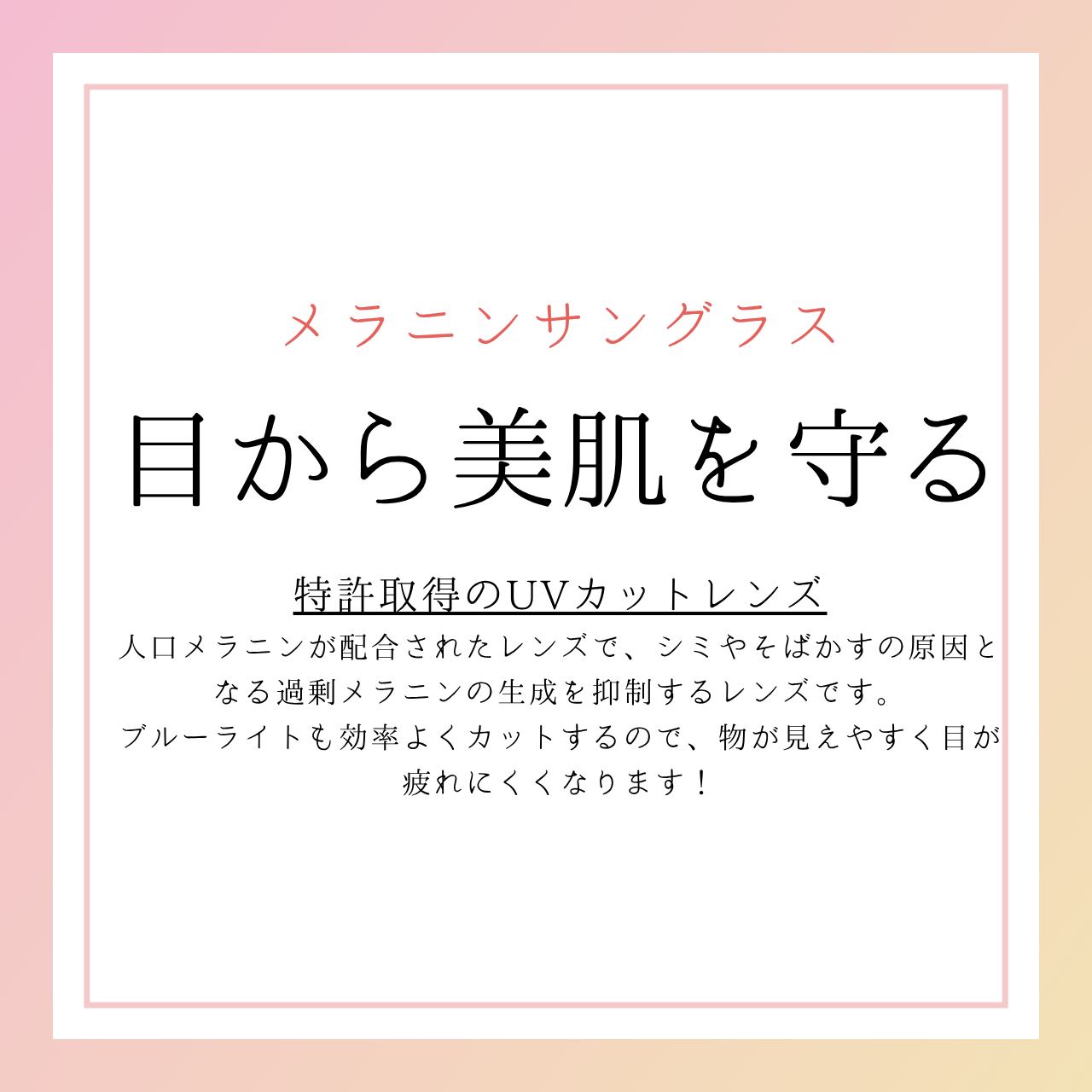 特許取得済みのメラニン配合レンズを採用し、シミやそばかすの原因となる過剰メラニンの生成を抑制。