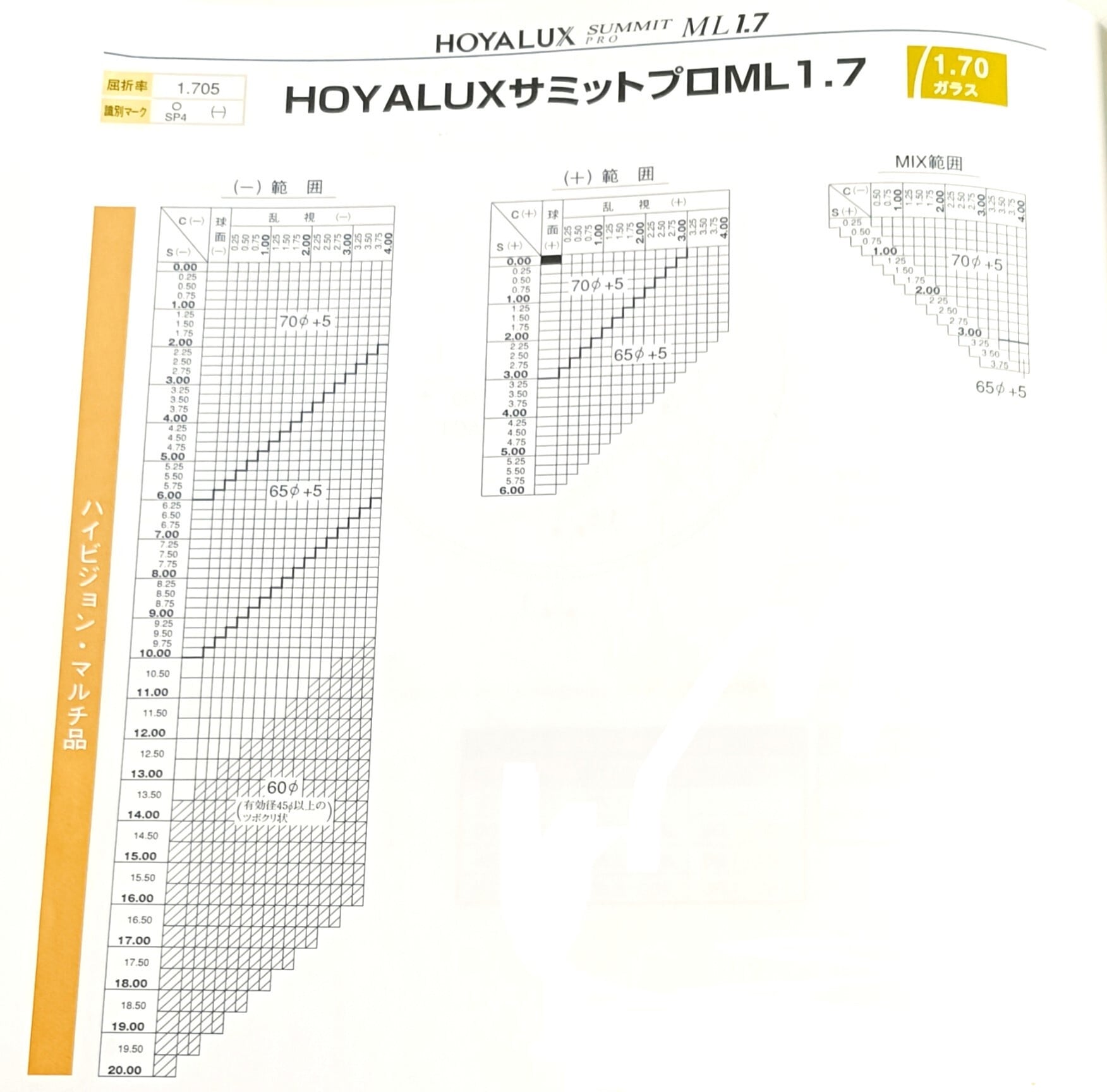 ガラス遠近両用カラー HOYA HOYALUXサミットプロML1.7 ホヤラックス 1.70ガラス アンバー(15,25)ハイビジョンコート 累進レンズ 遠近両用レンズ