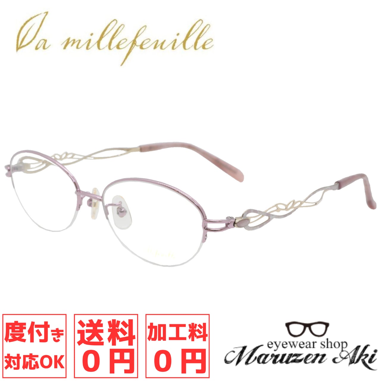 La millefeuille ラ ミルフィーユ MLF-169 col.1 52サイズ おしゃれ メガネ レディース チタン ダテ 度付き