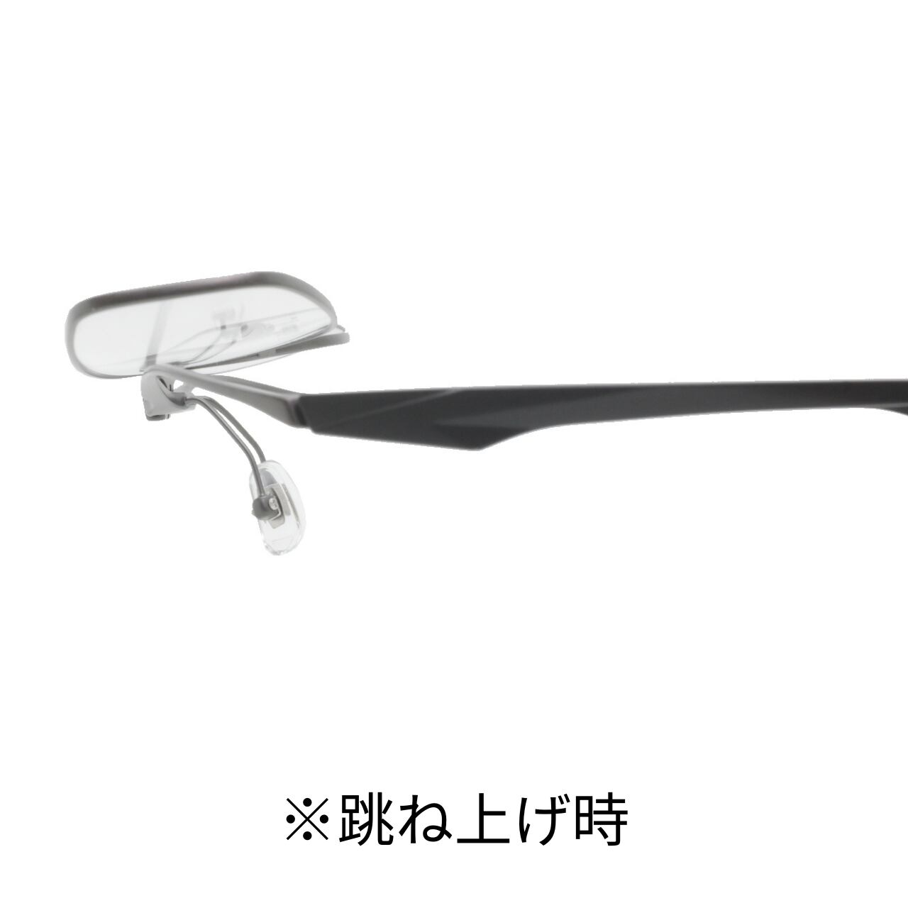レンズ部分を簡単に跳ね上げできるギミックにより、手元作業や一時的な視界切り替えがスムーズ。眼鏡を外さずに、近くの物を見る場面でも重宝します。