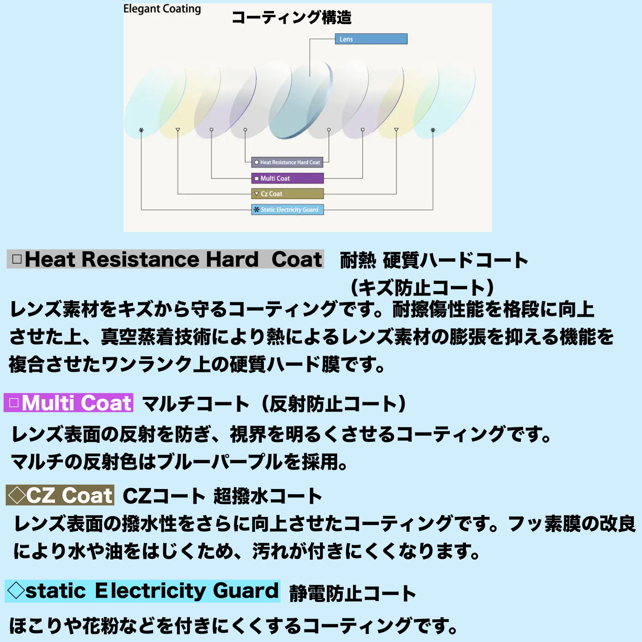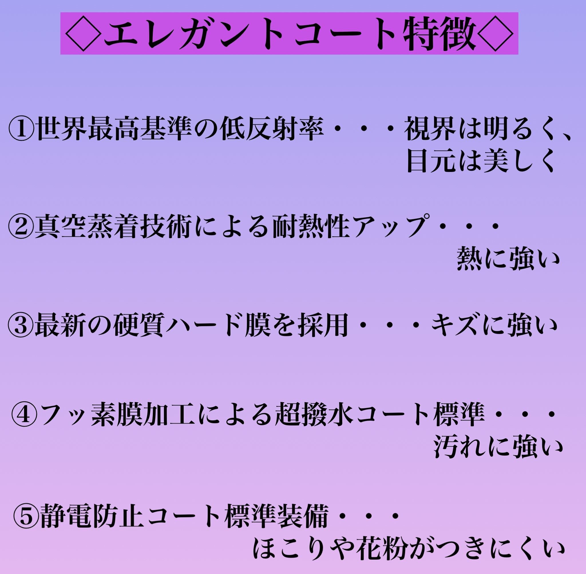 コート:エレガントコート(低反射+耐熱・傷防止・静電防止コート付)