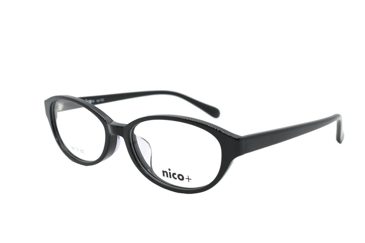 【5,000円セット】 nico+ np-112 col.4+レンズセット 52サイズ ブラック 黒色 おしゃれ メガネ ダテ 度なし 度付 防災 予備 お家用 セット 近視 乱視 老眼対応 ニコプラス