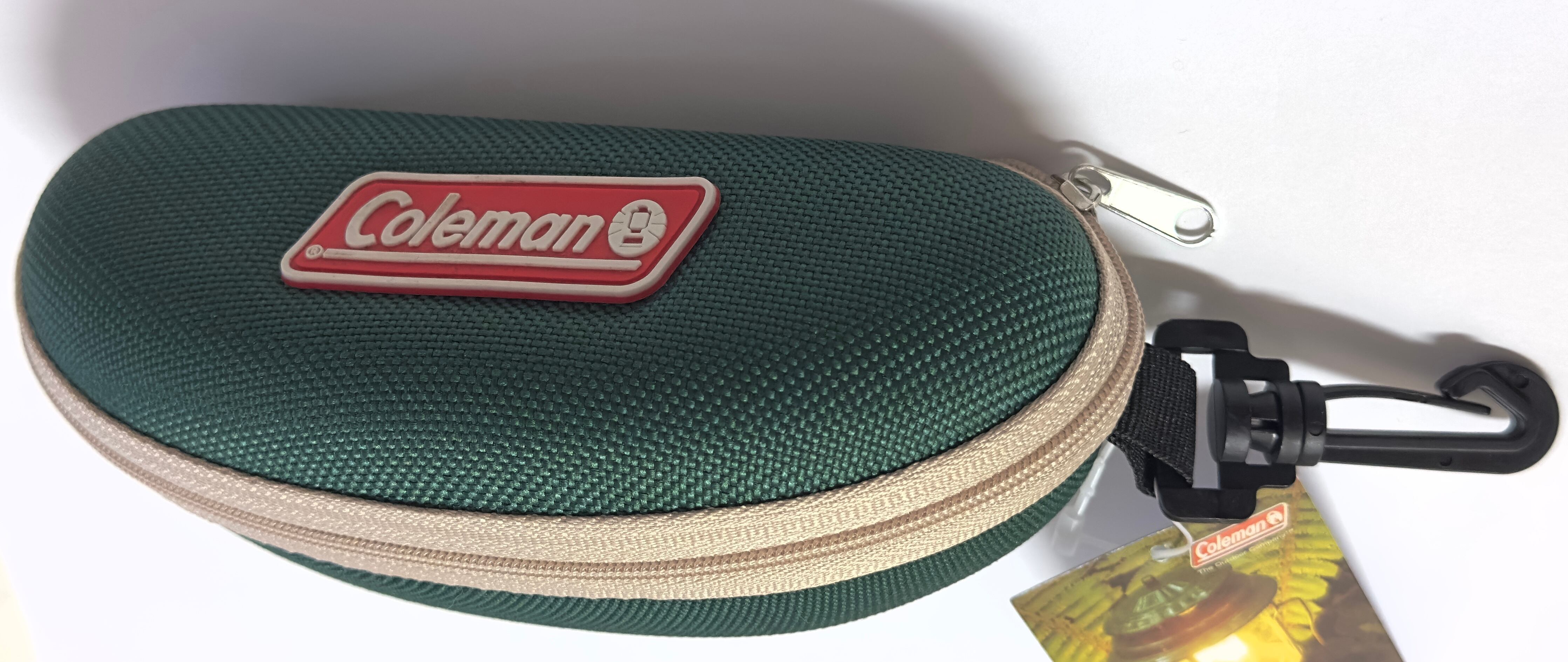 Coleman コールマン メガネケース グリーン ファスナー フック式 釣り用メガネケース アウトドア用メガネケース 大きいメガネケース 眼鏡ケース